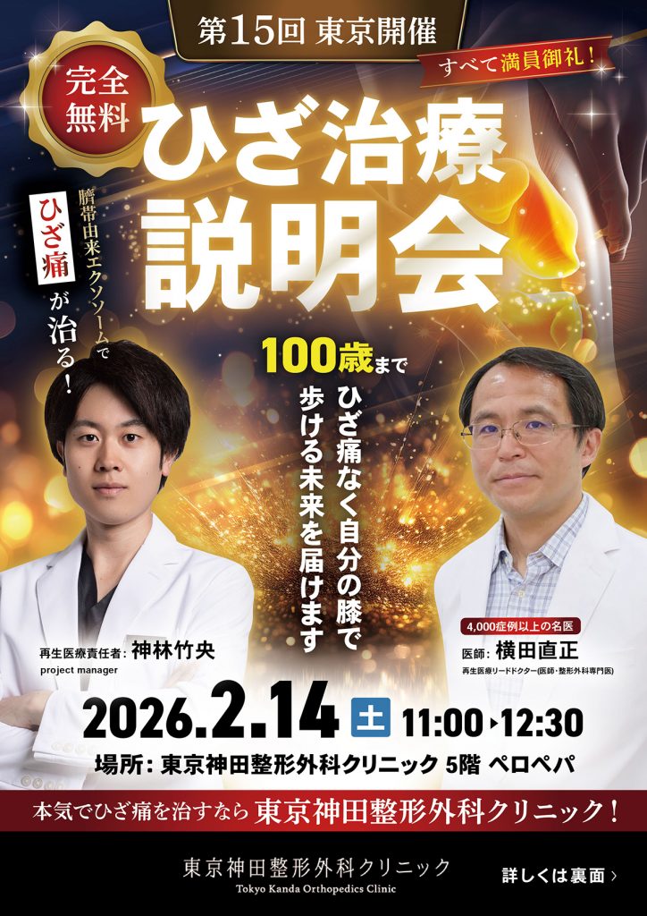 第15回"東京"開催!ひざ治療説明会の開催日は2026年2月14日(土曜)