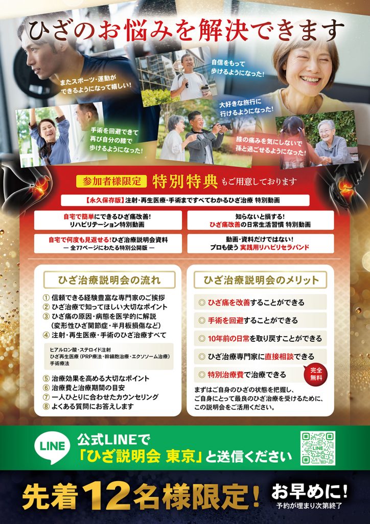 公式LINEで「ひざ説明会 東京」と送信ください。